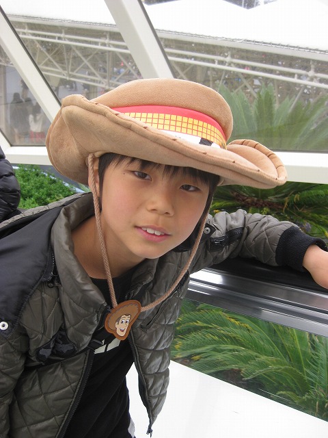 だいちはアトラクションを楽しみつつ、前から憧れていたかぶり物を何かつけたくてしょうがない。