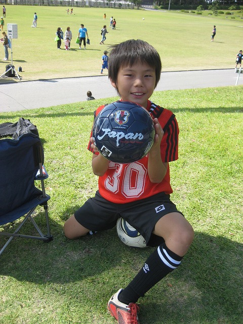 だいちは大喜びで日本代表のサッカーボールを選んだ。