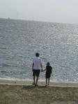 波打ち際で、砂の防波堤を作る作業に没頭していたね。