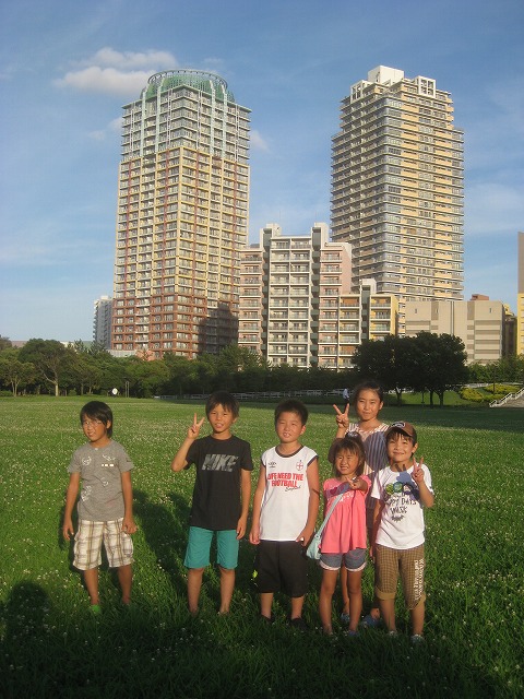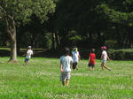 みんなとサッカーがしたい!ってボール持参していたけど、広場の芝は手入れがされていなくてサッカーはやりづらかったみたい。